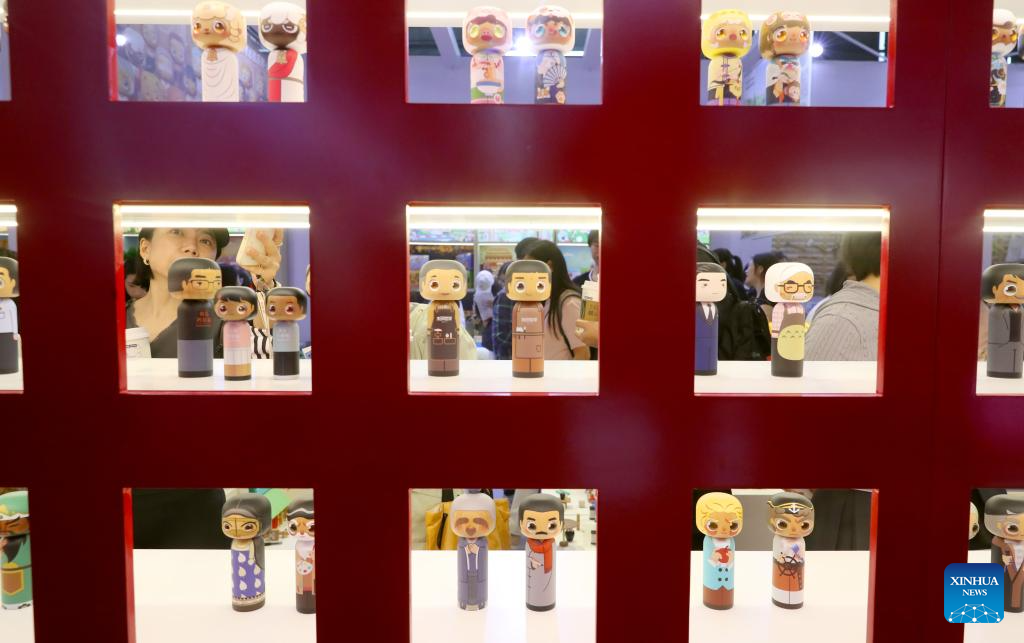 Visitors look at miniatures displayed during the 2024 China Toy Expo in east China's Shanghai, Oct. 16, 2024. The three-day 2024 China Toy Expo kicked off at Shanghai New International Expo Centre Wednesday, attracting more than 2,500 companies of the toy industry from home and abroad. (Xinhua/Fang Zhe)