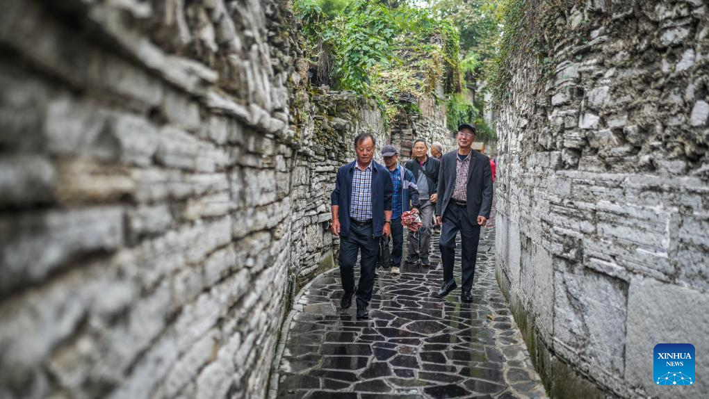 Tourists visit the Qingyan ancient town in Guiyang, capital of southwest China's Guizhou Province, Oct. 16, 2024. (Xinhua/Tao Liang)