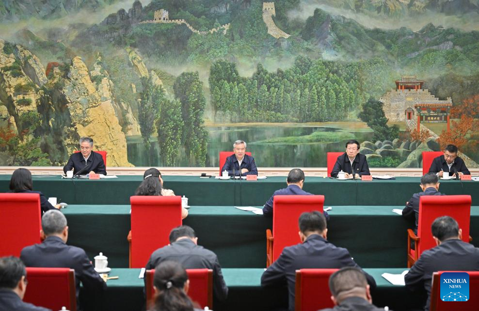 Li Xi, a member of the Standing Committee of the Political Bureau of the Communist Party of China (CPC) Central Committee and secretary of the CPC Central Commission for Discipline Inspection, presides over a seminar in Tianjin, north China, Oct. 16, 2024. Li made an inspection tour to north China's Tianjin Municipality from Monday to Wednesday. (Xinhua/Yue Yuewei)