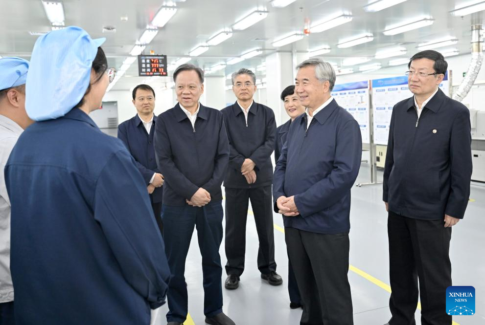 Li Xi, a member of the Standing Committee of the Political Bureau of the Communist Party of China (CPC) Central Committee and secretary of the CPC Central Commission for Discipline Inspection, visits an information technology company in Tianjin, north China, Oct. 15, 2024. Li made an inspection tour to north China's Tianjin Municipality from Monday to Wednesday. (Xinhua/Yue Yuewei)