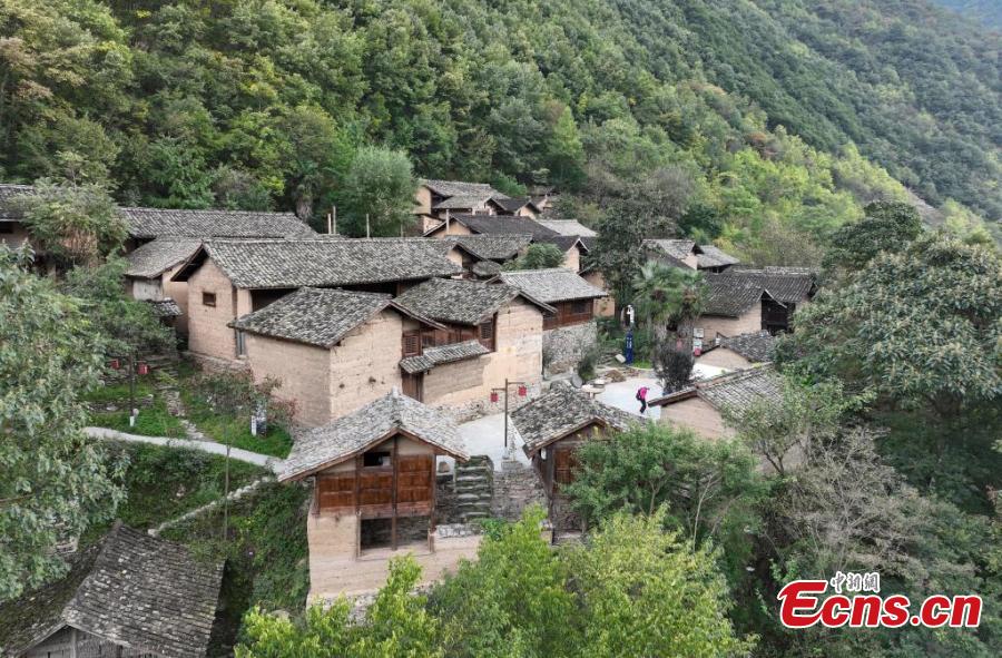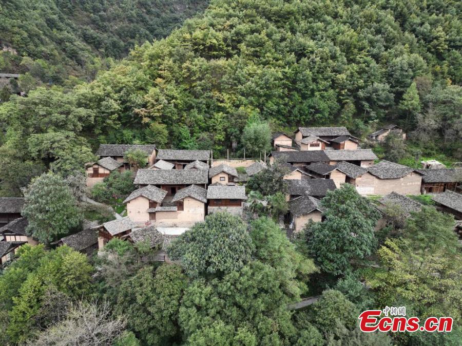 Aerial photo taken on Oct. 16, 2024, shows the Zhangba ancient village in northwest China's Gansu Province. (Photo: China News Service/Mao Jianjun)