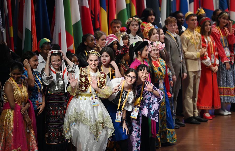 Competitors attend the opening ceremony of the 17th "Chinese Bridge" Chinese proficiency competition for foreign secondary school students in north China's Tianjin, Oct. 17, 2024. (Xinhua/Li Ran)