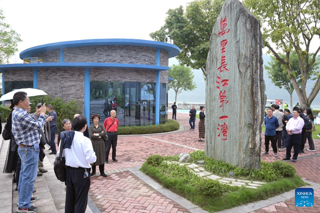 People visit the Nanxi riverside wetland park in Yibin City, southwest China's Sichuan Province, Oct. 14, 2024. The city of Yibin is an important ecological shelter and water source conservation base on the upper reaches of the Yangtze River. The Yangtze River, Jinsha River, and Minjiang River meet in the downtown area of Yibin.