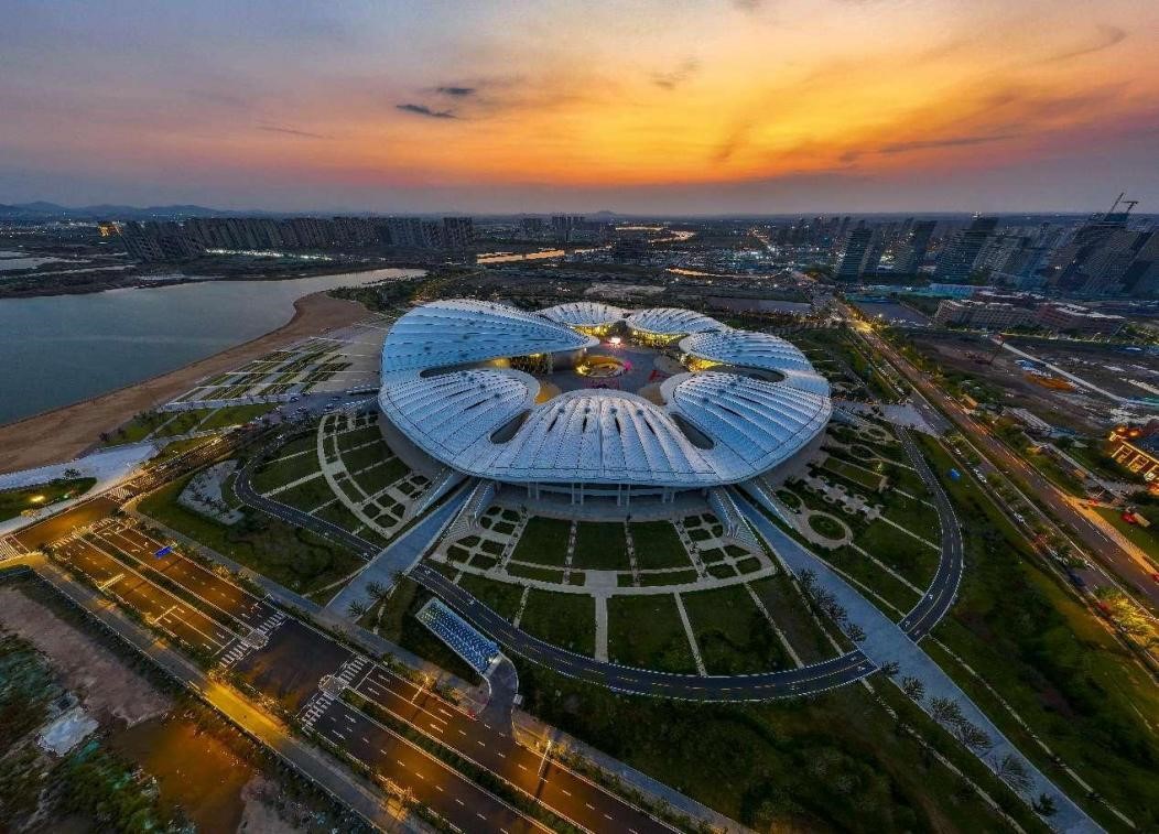 Photo shows the Qingdao SCODA Pearl International Expo Center in the China-SCO Local Economic and Trade Cooperation Demonstration Area (SCODA) in Qingdao, east China's Shandong province. (Photo by Yang Xuemei/People's Daily Online)