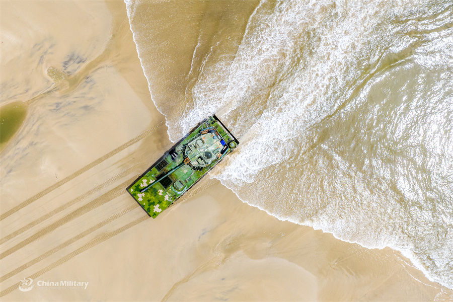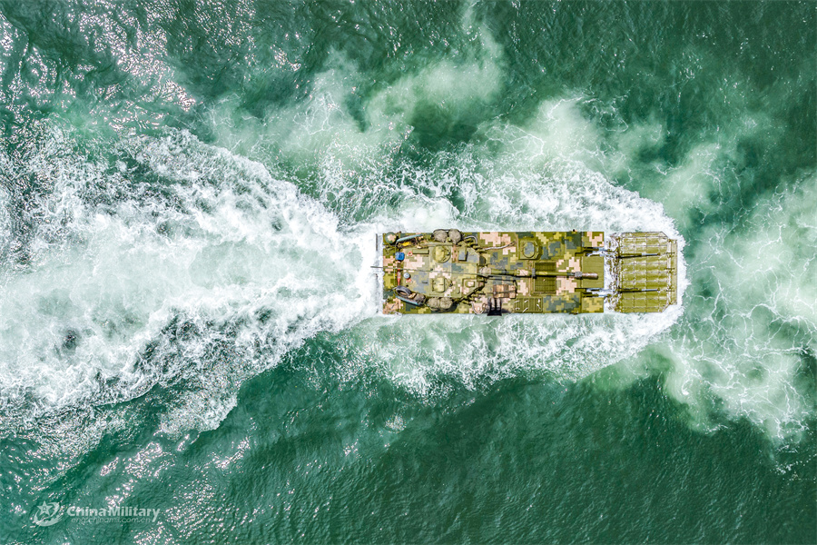 An amphibious armored vehicle attached to a brigade with the army under the Chinese PLA Eastern Theater Command engages in a landing training exercise on August 5, 2024. (eng.chinamil.com.cn/Photo by Xie Wenjian)