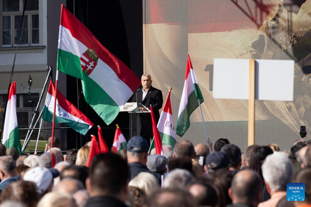 BUDAPEST, Oct. 23 (Xinhua) -- Hungarian Prime Minister Viktor Orban delivered a defiant speech in Budapest on Wednesday, marking the 68th anniversary of the 1956 revolution by emphasizing Hungary's determination to defend its national sovereignty against growing pressure from the European Union (EU).