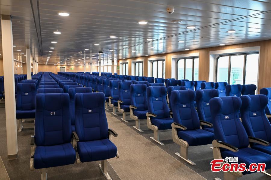 An interior view of China's first homegrown Ro-Pax ferry - GNV Polaris at Nansha port in Guangzhou, south China's Guangdong Province, Oct. 24, 2024. (Photo: China News Service/Chen Jimin)