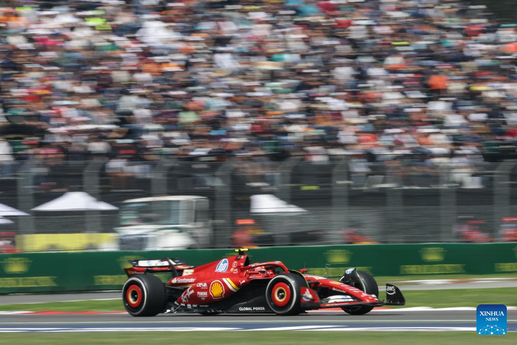 Ferrari's Spanish driver Carlos Sainz competes during a practice session of the 2024 Formula One Mexico City Grand Prix at the Hermanos Rodriguez Circuit in Mexico City, Mexico, Oct. 25, 2024. (Xinhua/Li Mengxin)