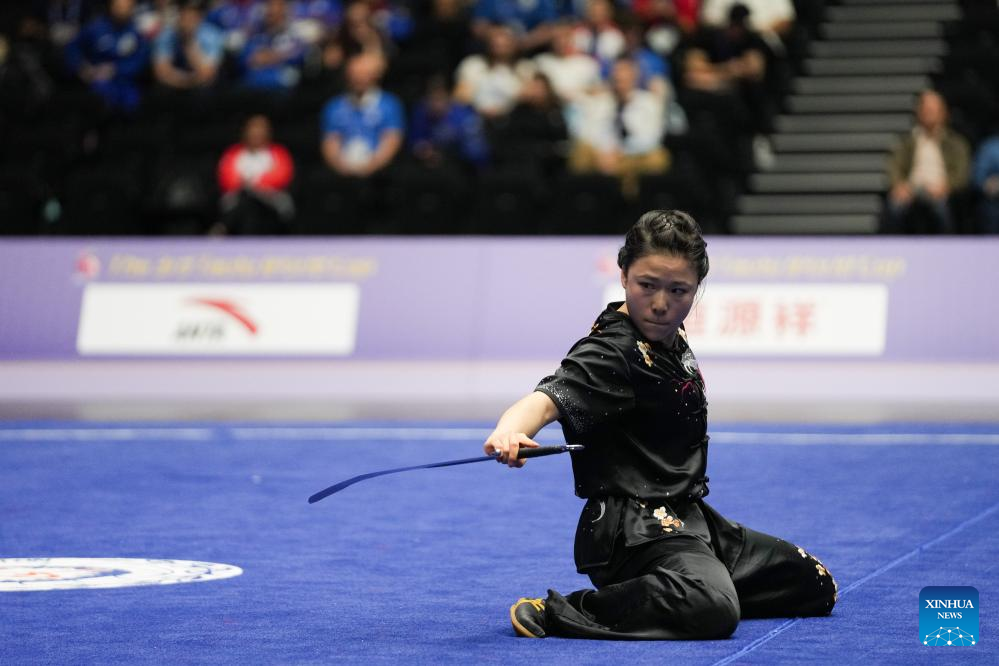 Wu Jianing of China competes during the Women's Nandao competition of the 3rd Taolu World Cup held in Yokohama, Japan, on Oct. 26, 2024. (Xinhua/Zhang Xiaoyu)