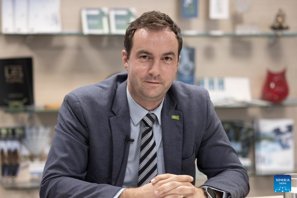 Rok Capl, head of the Slovenian Business Development Agency SPIRIT, poses for photos during an interview with Xinhua in Ljubljana, Slovenia, on Oct. 24, 2024. (Photo by Zeljko Stevanic/Xinhua)