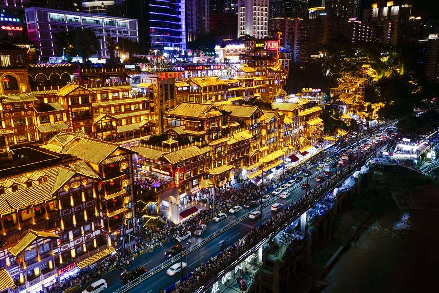 According to the city's Commission of Culture and Tourism Development, Chongqing welcomed 22.68 million domestic tourists during the seven-day National Day holiday, a 14.1 percent year-on-year increase. Tourists spent around 15.4 billion yuan (around 2.16 billion U.S. dollars), up 15.8 percent year on year, while overnight inbound visitors surged by 140.4 percent.