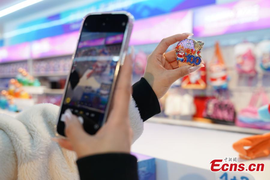 A customer takes a photo of a souvenir at an official store of the 9th Asian Winter Games in Harbin, northeast China's Heilongjiang Province, Oct. 27, 2024. (Photo: China News Service/Zhao Yuhang)