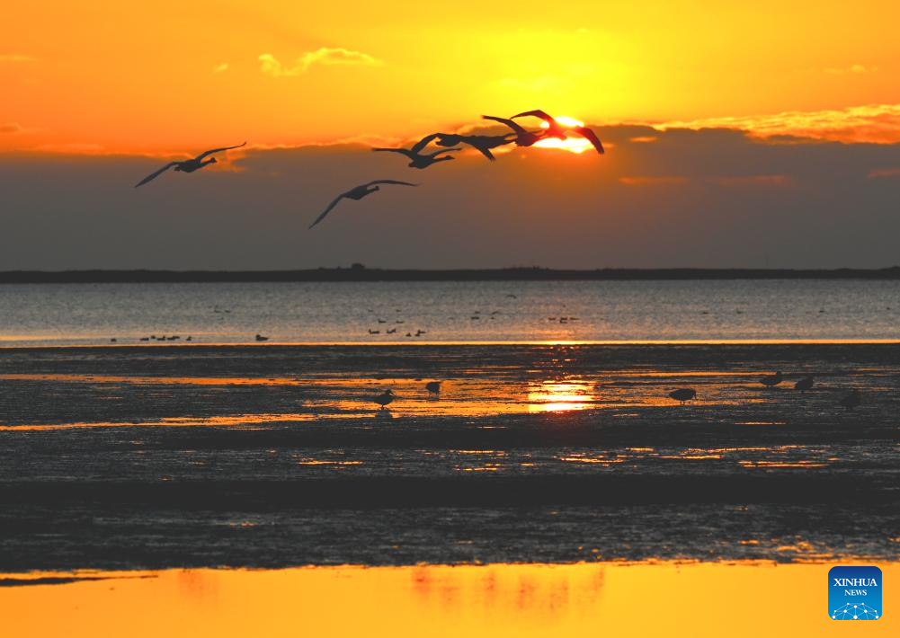 Swans are pictured at a reserve in Rongcheng, east China's Shandong Province, Oct. 28, 2024. (Photo by Yang Zhili/Xinhua)