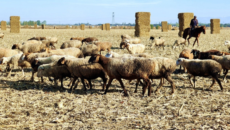 "My family possesses 43 cows, 260 sheep and 25 horses. Every year after the autumn harvest, livestock are grazed in the corn fields until winter comes. It saves the winter forage for livestock and reduces the feeding costs," said Bahtir Gemingjiang, a local herdsman.