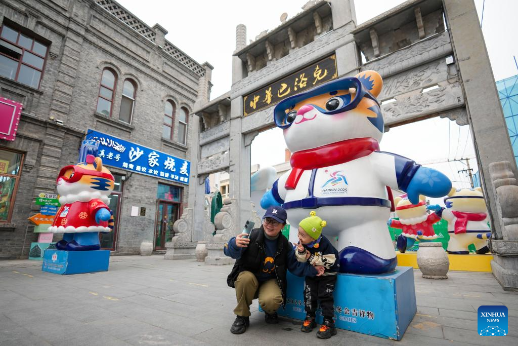 The 9th Asian Winter Games mascots are seen in Harbin, northeast China's Heilongjiang Province, Oct. 30, 2024. The countdown to the 9th Asian Winter Games Harbin 2025 hit the 100-day mark on Oct. 30, 2024. (Xinhua/Wang Jianwei)