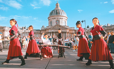 Members of the Emei Kung Fu Girls group perform in Paris. (Photo courtesy of the interviewee)