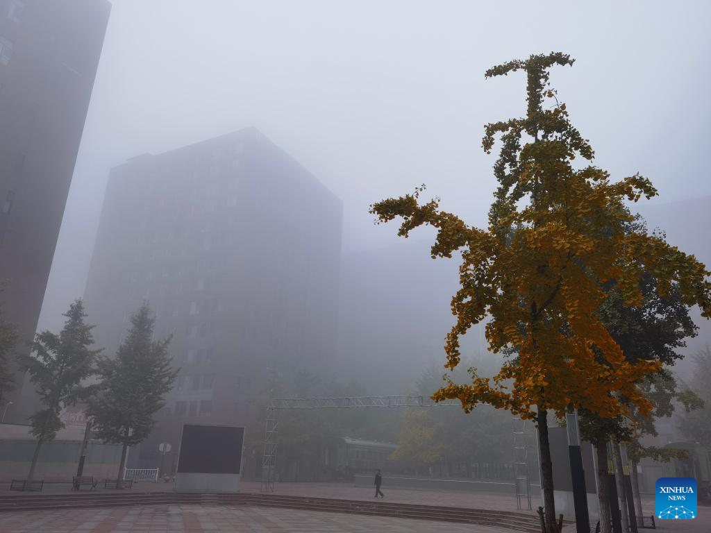Citizens walk amid fog in Beijing, capital of China, Nov. 2, 2024. (Xinhua/Li Xin)