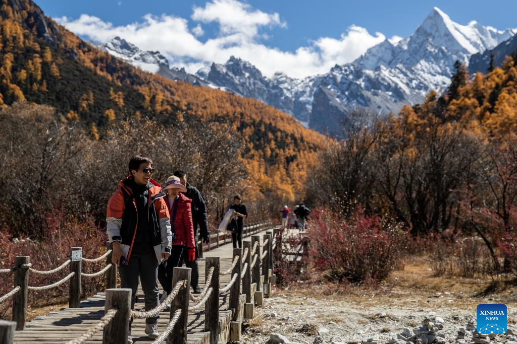 Tourists visit the Yading scenic spot in Daocheng County of Tibetan Autonomous Prefecture of Garze, southwest China's Sichuan Province, Oct. 31, 2024. (Xinhua/Chu Jiayin)