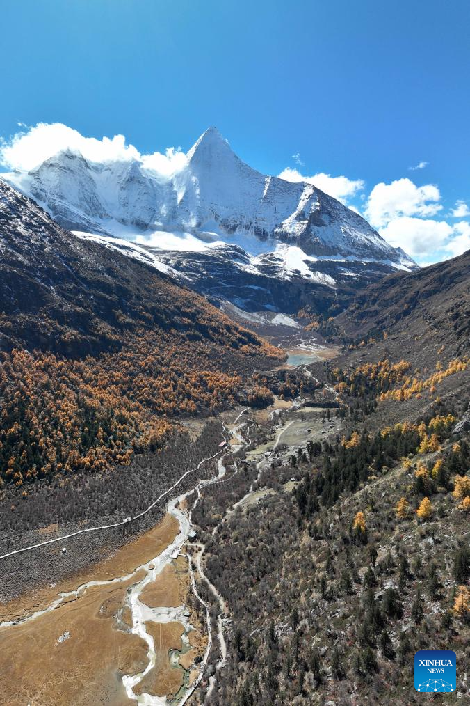 The autumn scenery of the Yading scenic spot in Daocheng County of Tibetan Autonomous Prefecture of Garze is at peak recently, attracting tourists to explore its beauty.