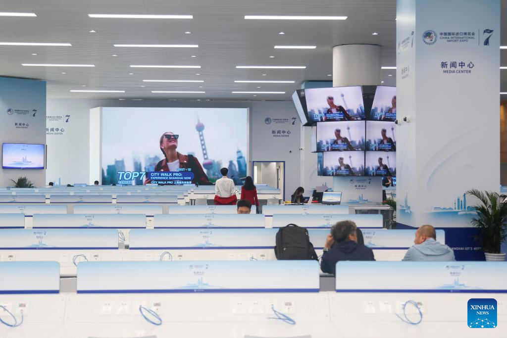 Glimpse of media center for 7th CIIE