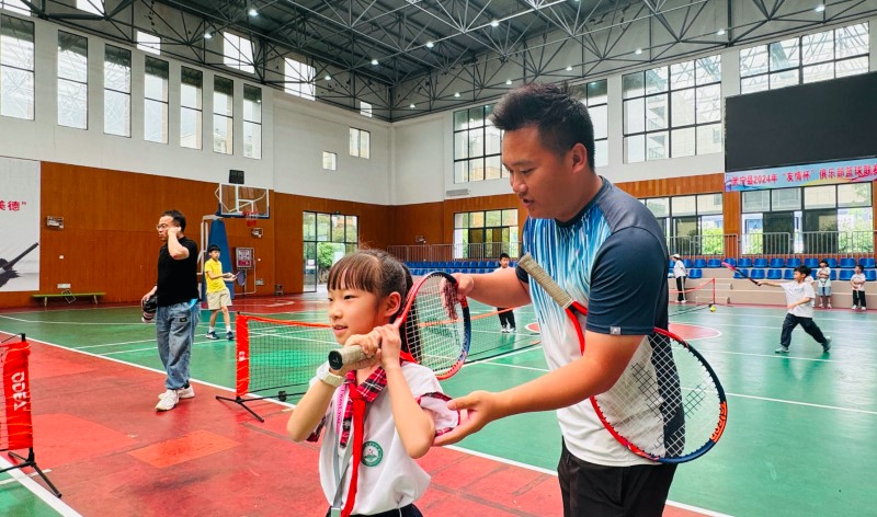 Photo shows a girl learning to play tennis in Wuning county, east China's Jiangxi province. With a population of only over 300,000, Wuning county is seeing over 13,000 primary and middle school students joining tennis training. (Photo from Workers' Daily)