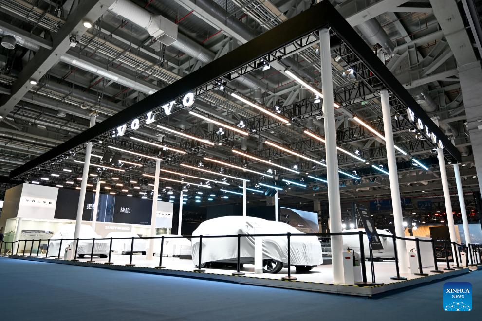 This photo taken on Nov. 4, 2024 shows the automobile exhibition area of the 7th China International Import Expo (CIIE) at the National Exhibition and Convention Center (Shanghai) in Shanghai, east China. The 7th CIIE will be held in Shanghai from Nov. 5 to 10. (Photo by Chen Haoming/Xinhua)