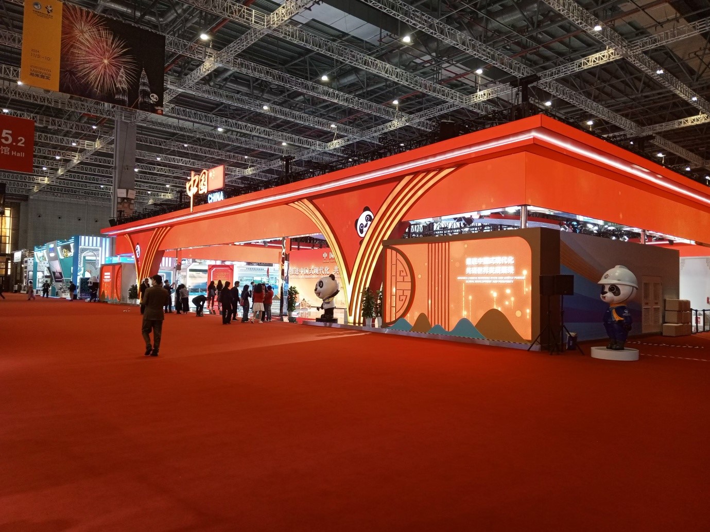 The pavilion of China at the center of the B2 Hall awaits attendees of the 7th China International Import Expo (CIIE), Nov.5, 2024, east China's Shanghai.? (People's Daily Online/Kostas Papathanasiou)