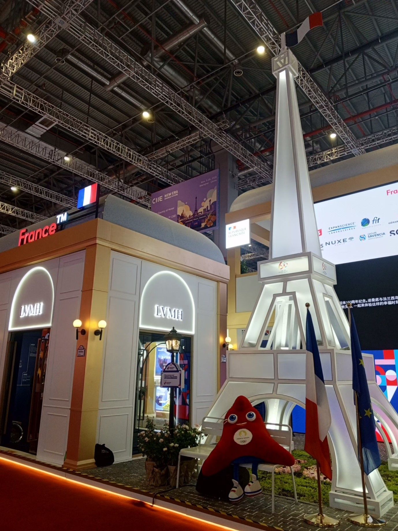 The pavilion of France displaying a replica Eiffel Tower at the B2 Hall of the 7th China International Import Expo (CIIE), Nov. 5, 2024, east China's Shanghai. (People's Daily Online/Kostas Papathanasiou)