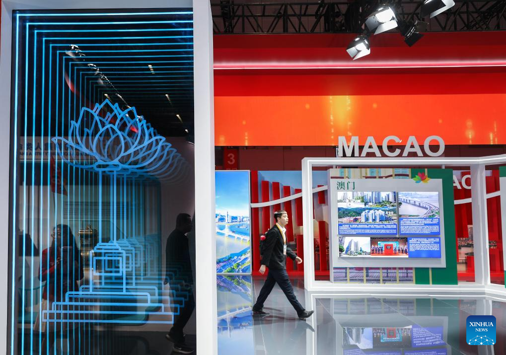 A man walks past the booth of the Macao Special Administrative Region at the China Pavilion during the seventh China International Import Expo (CIIE) in east China's Shanghai, Nov. 5, 2024. The newest edition of the CIIE, the world's first national-level exposition dedicated to imports, opened on Tuesday in Shanghai.