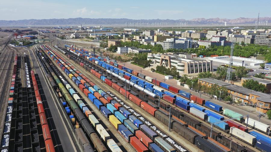 Four freight trains will depart from the station this month, and they will pass through either Alataw Port or Horgos Port -- two land ports in Xinjiang located on the border between China and Kazakhstan -- to deliver goods to the Central Asian and European markets.