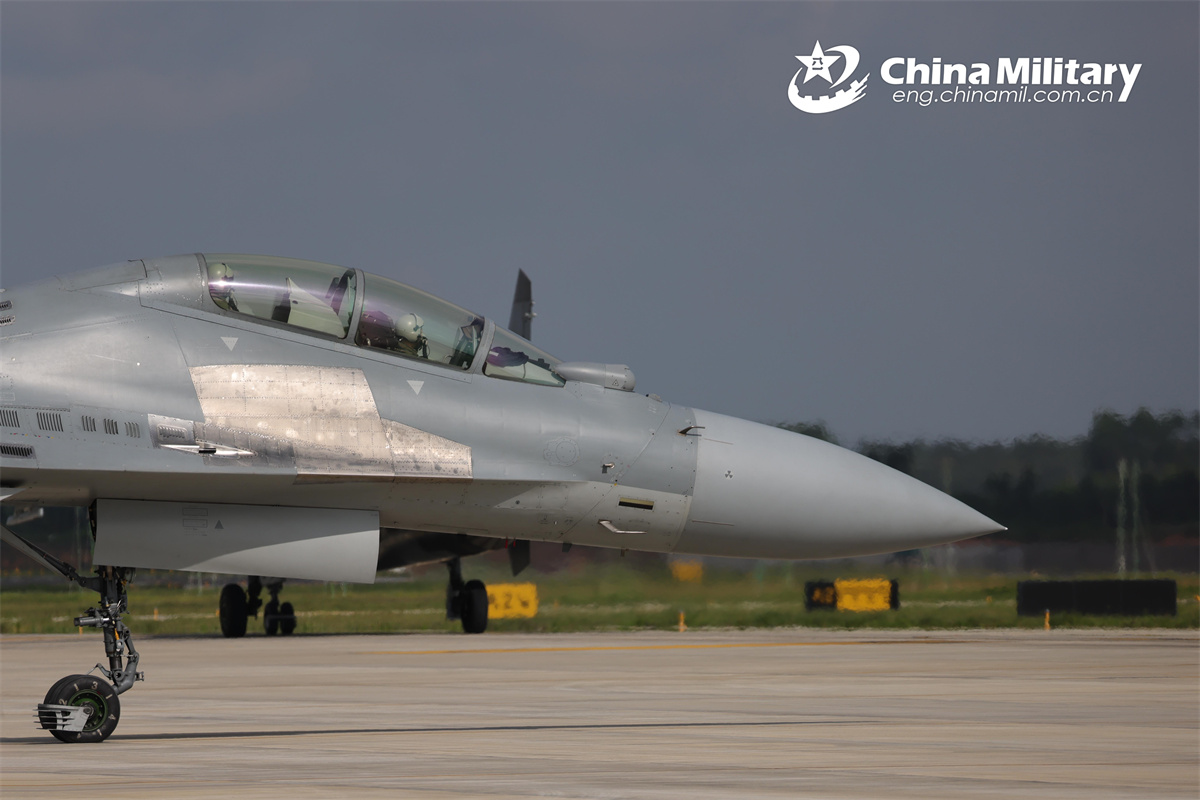 A J-16 fighter jet attached to an aviation brigade with the air force under the Chinese PLA Southern Theater Command taxis on the runway during a multi-subject flight training exercise on August 28th, 2024. (eng.chinamil.com.cn/Photo by Zhang Weishan)