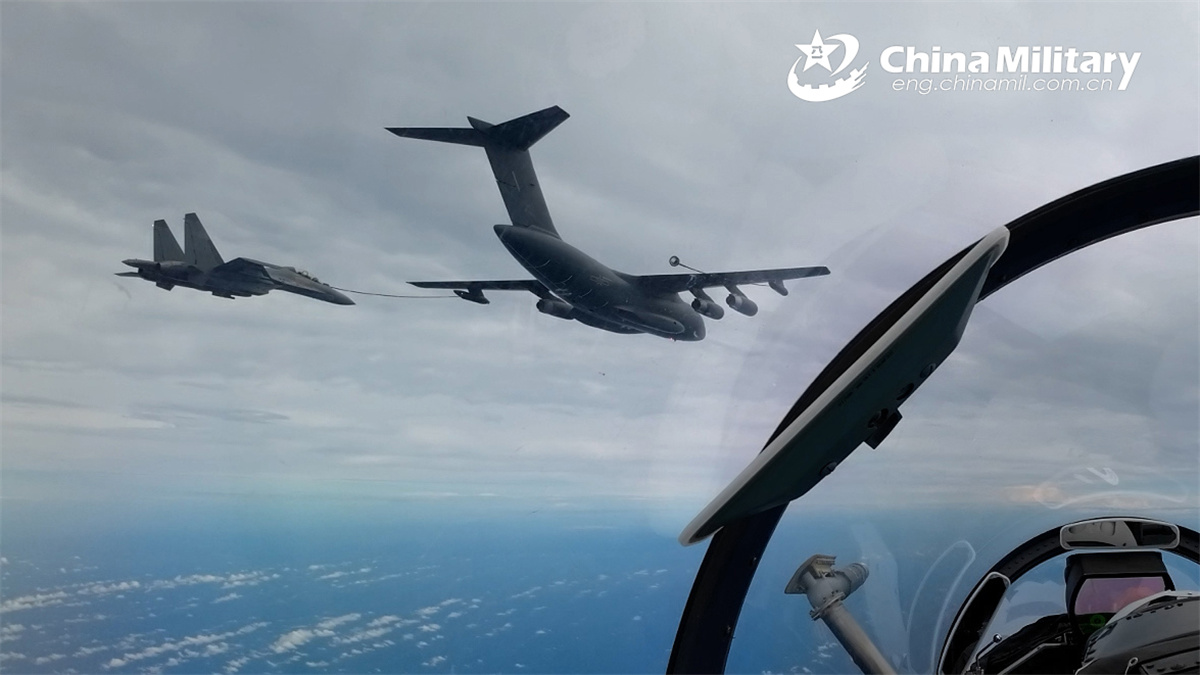 A YY-20 tanker attached to an aviation brigade with the air force under the Chinese PLA Southern Theater Command refuels two J-16 fighter jets during a multi-subject flight training exercise on August 28th, 2024. (eng.chinamil.com.cn/Photo by Zhang Weishan)