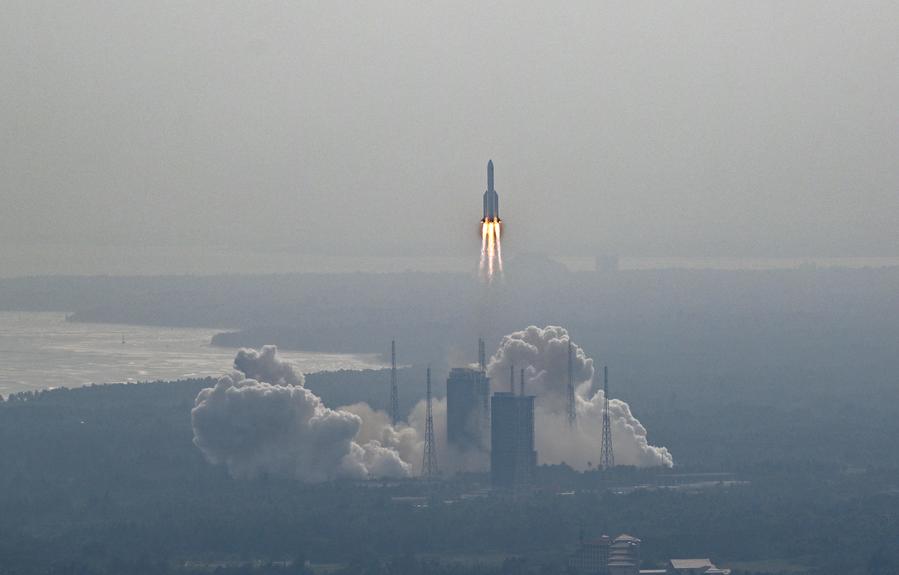 The Long March-5B Y4 carrier rocket, carrying the space lab module Mengtian, blasts off from the Wenchang Spacecraft Launch Site in south China's Hainan Province, Oct. 31, 2022. (Xinhua/Guo Cheng)