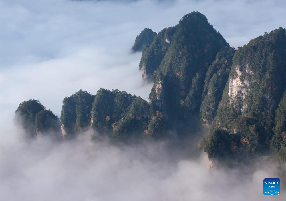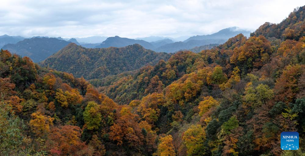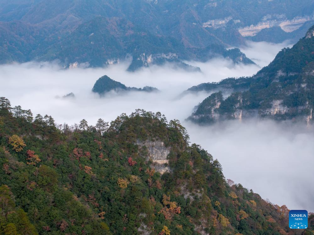 This photo taken on Nov. 6, 2024 shows the scenery in Guangwu Mountain scenic area in Bazhong City, southwest China's Sichuan Province. (Xinhua/Jiang Hongjing)