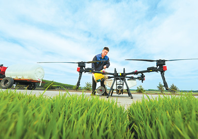 Cheng said the farm introduced 10 new unmanned rice transplanters this year alone, which expanded the area planted by machines from 3,000 mu (200 hectares) last year to 30,000 mu. Cheng said the farm has also adopted agricultural drones to spray pesticides. A drone can spray pesticides on 13 mu of land within six minutes, Cheng said, adding that the drone is equipped with advanced technologies including image processing techniques and remote sensing technology, as well as an intelligent spraying system to ensure precise operation.