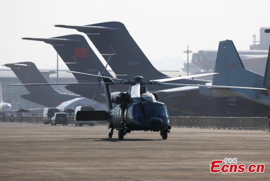 A PLA's Z-20 helicopter arrives at the Zhuhai International Air Show Center, south China's Guangdong Province, Nov. 7, 2024. (Photo: China News Service/Chen Jimin)