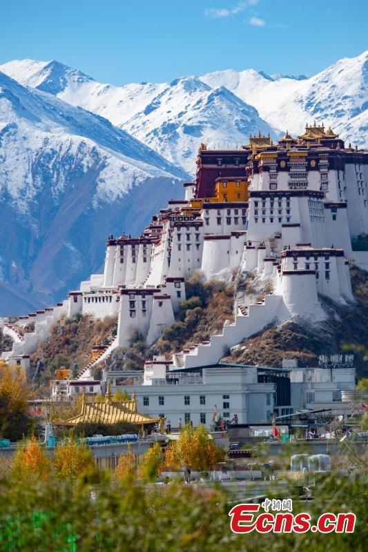 Photo shows the scenery of Potala Palace after snow in Lhasa, southwest China's Xizang Autonomous Region, Nov. 6, 2024. (Photo/China News Service)