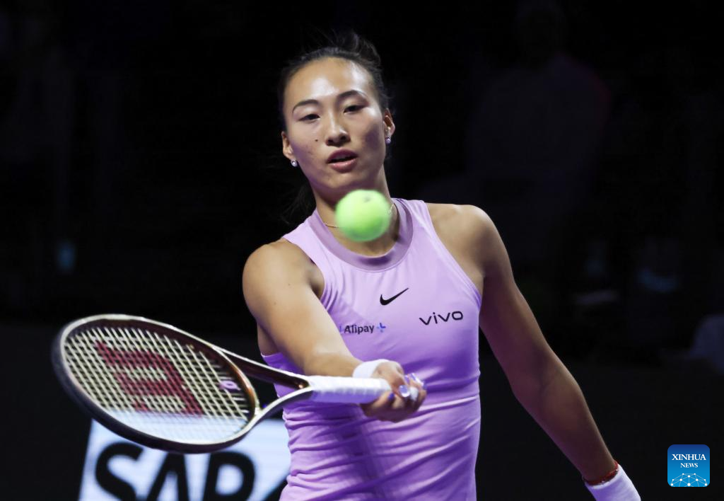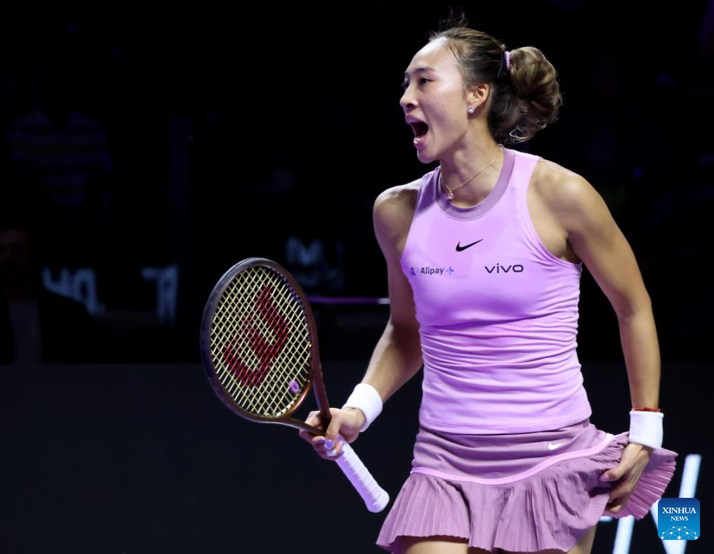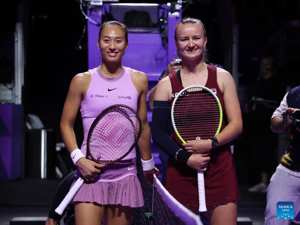 RIYADH, Nov. 8 (Xinhua) -- China's Paris Olympic gold medalist Zheng Qinwen advanced to the final of the WTA Finals in her tournament debut, after defeating the Czech Republic's Barbora Krejcikova in the semifinals here on Friday.
