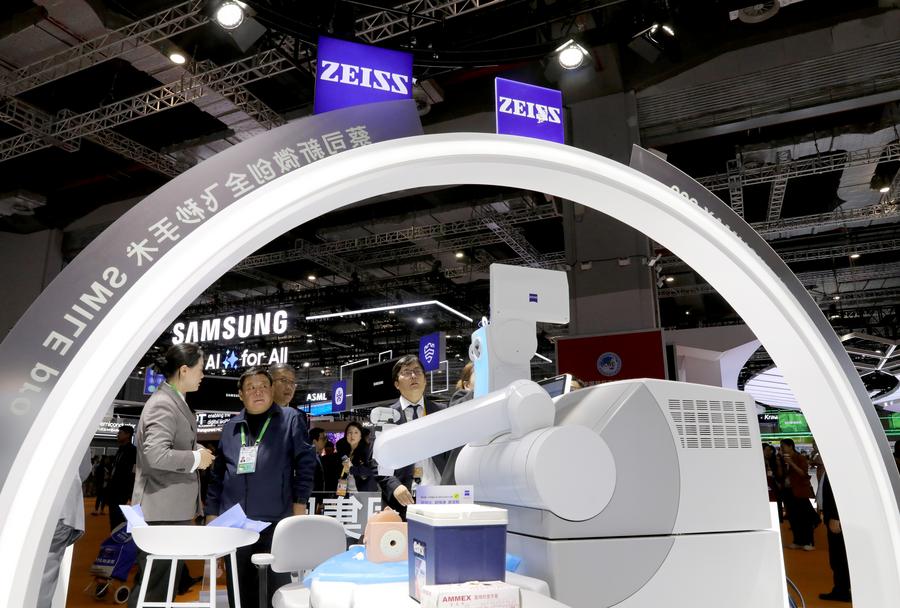 This photo taken on Nov. 6, 2024 shows a new generation of the small incision lenticule extraction robot from Zeiss during the 7th China International Import Expo (CIIE) in east China's Shanghai. (Xinhua/Fang Zhe)