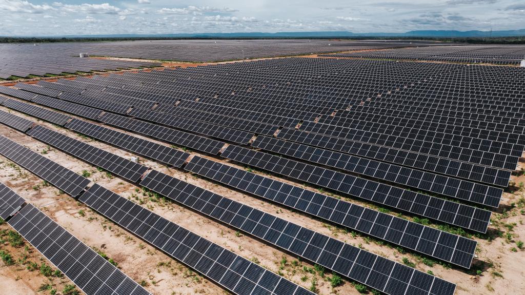 Aerial drone photo taken on June 7, 2024 shows the Marangatu photovoltaic power station in the northeastern Brazilian state of Piaui. (Xinhua/Wang Tiancong)