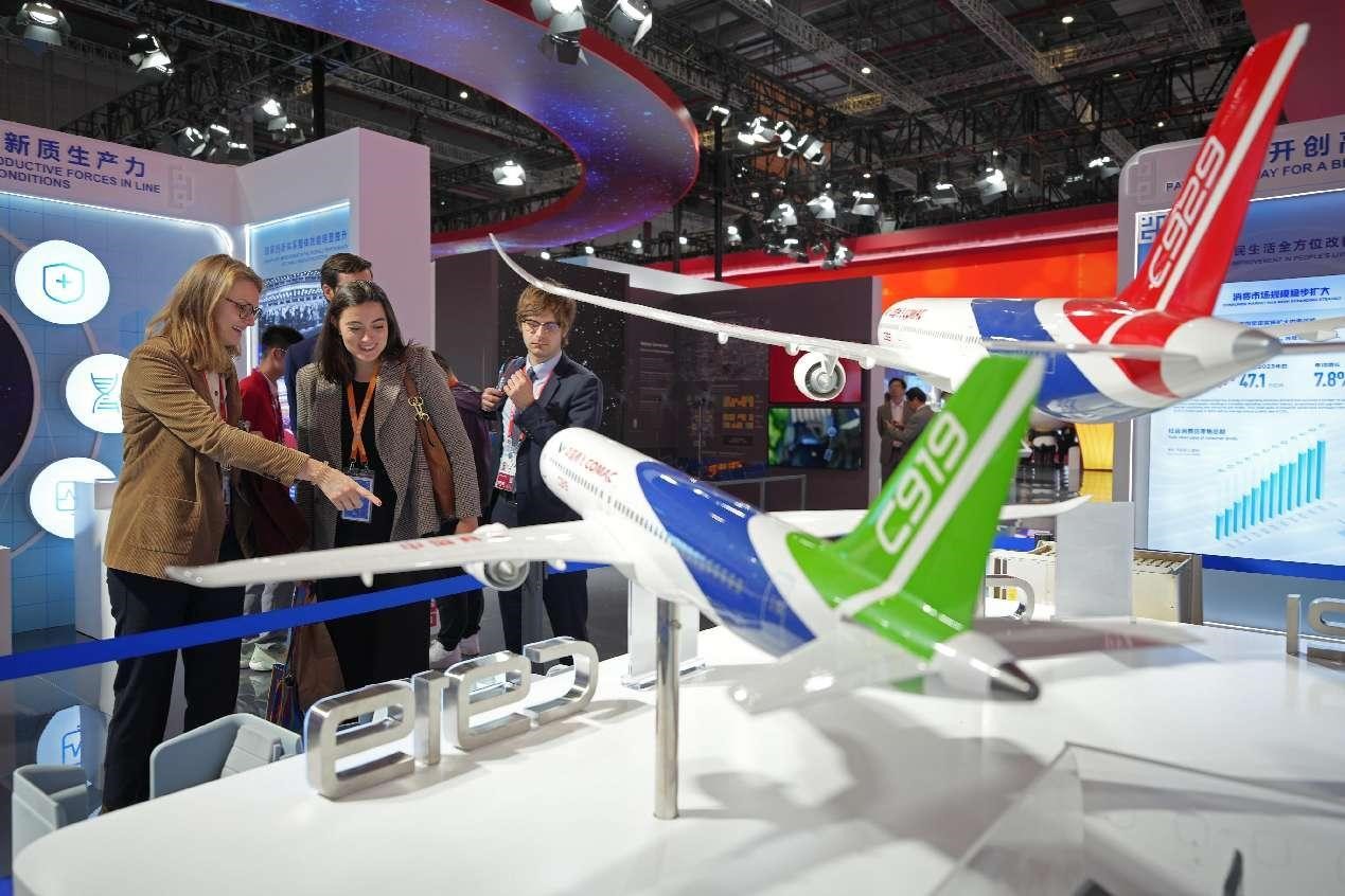 Models of China's homegrown aircraft are exhibited at the China Pavilion of the Country Exhibition of the 7th China International Import Expo. (People's Daily Online/Tang Ke)