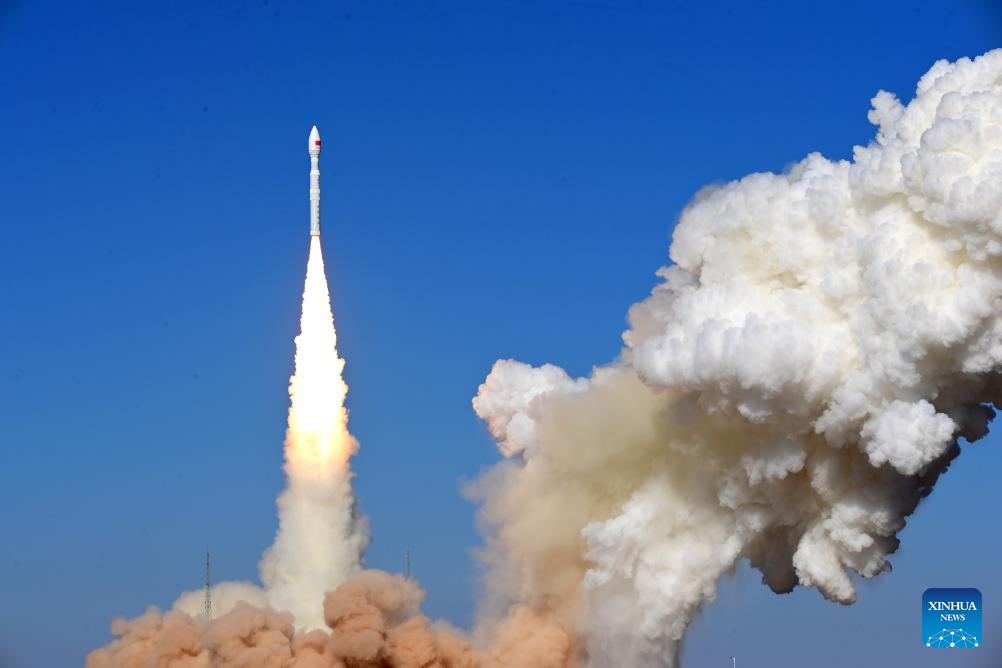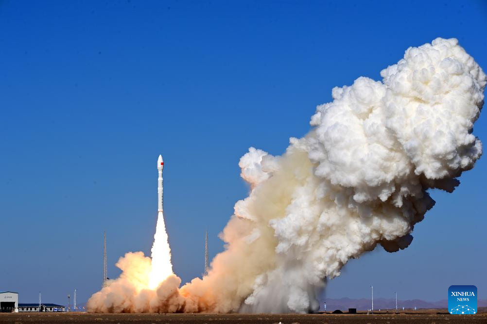 A Lijian-1 Y5 commercial carrier rocket with 15 satellites onboard blasts off from a commercial aerospace innovation pilot zone in northwest China, Nov. 11, 2024. (Photo by Wang Jiangbo/Xinhua)