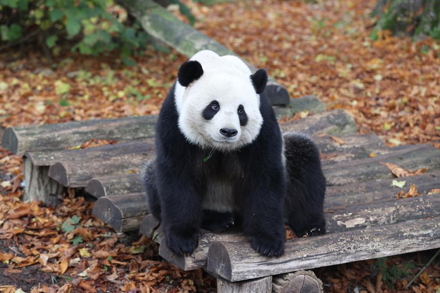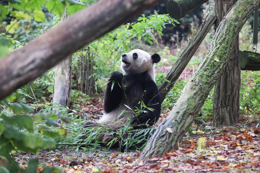 Giant panda Tian Bao is pictured at the Pairi Daiza zoo in Brugelette, Belgium, Nov. 10, 2024. (Xinhua/Zhao Dingzhe)
