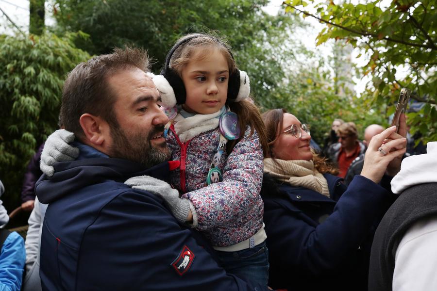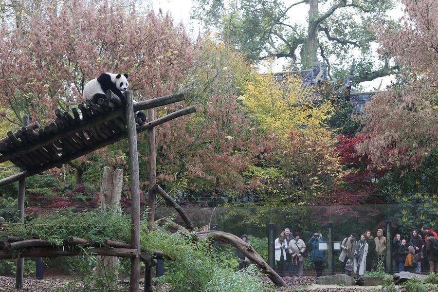 People visit giant pandas at the Pairi Daiza zoo in Brugelette, Belgium, Nov. 10, 2024. (Xinhua/Zhao Dingzhe)