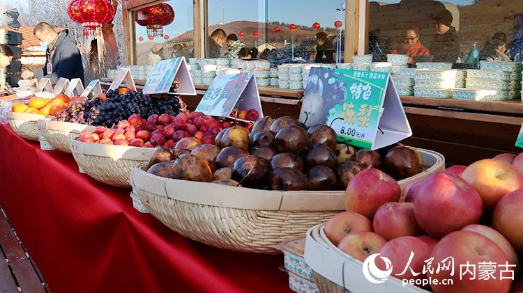 Agricultural products are on display during an event held to mark the start of the winter tourism season in Hulun Buir city, north China's Inner Mongolia Autonomous Region, on Nov. 7, 2024. (Photo/Li Rong)
