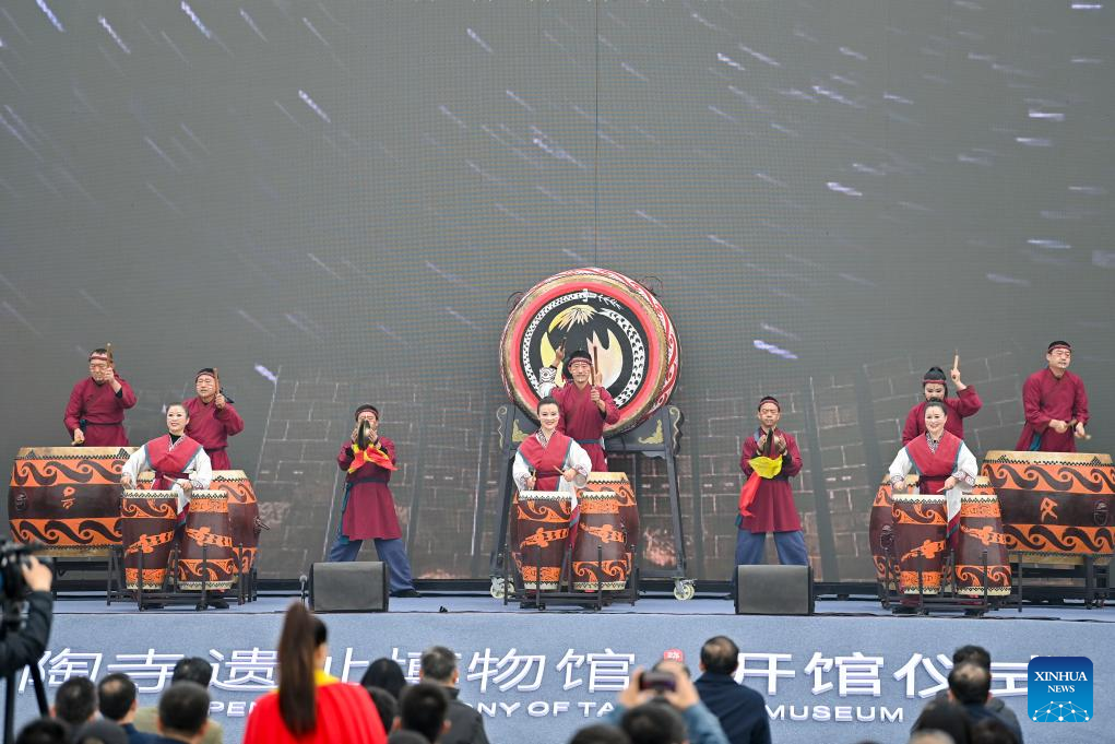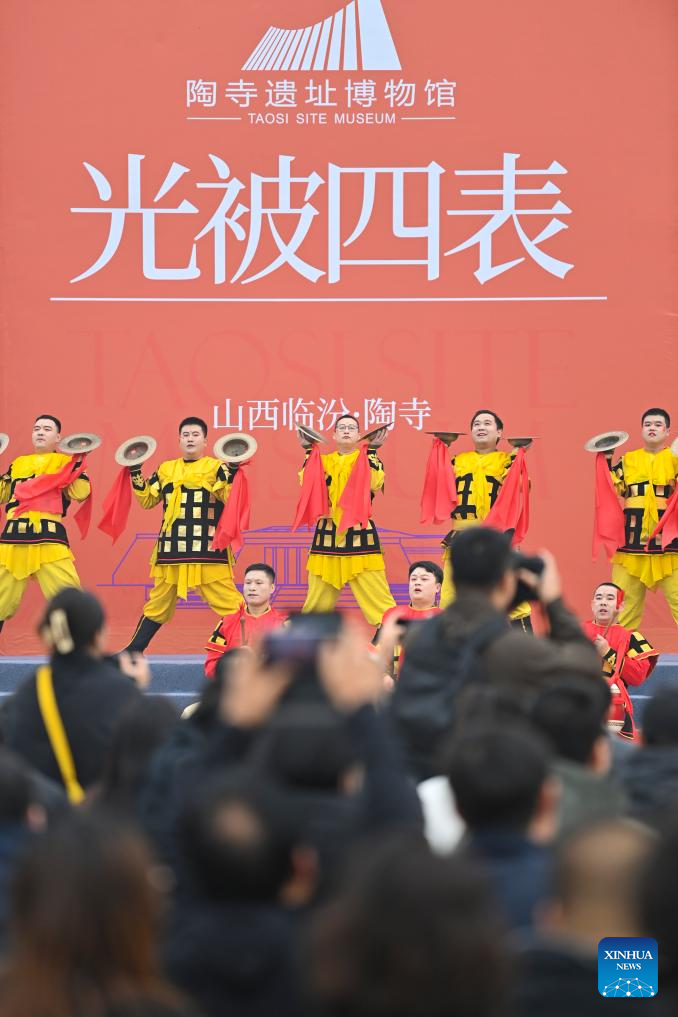 A performance is staged during the opening ceremony of the Taosi Site Museum in Xiangfen County, north China's Shanxi Province, Nov. 12, 2024. (Xinhua/Yang Chenguang)