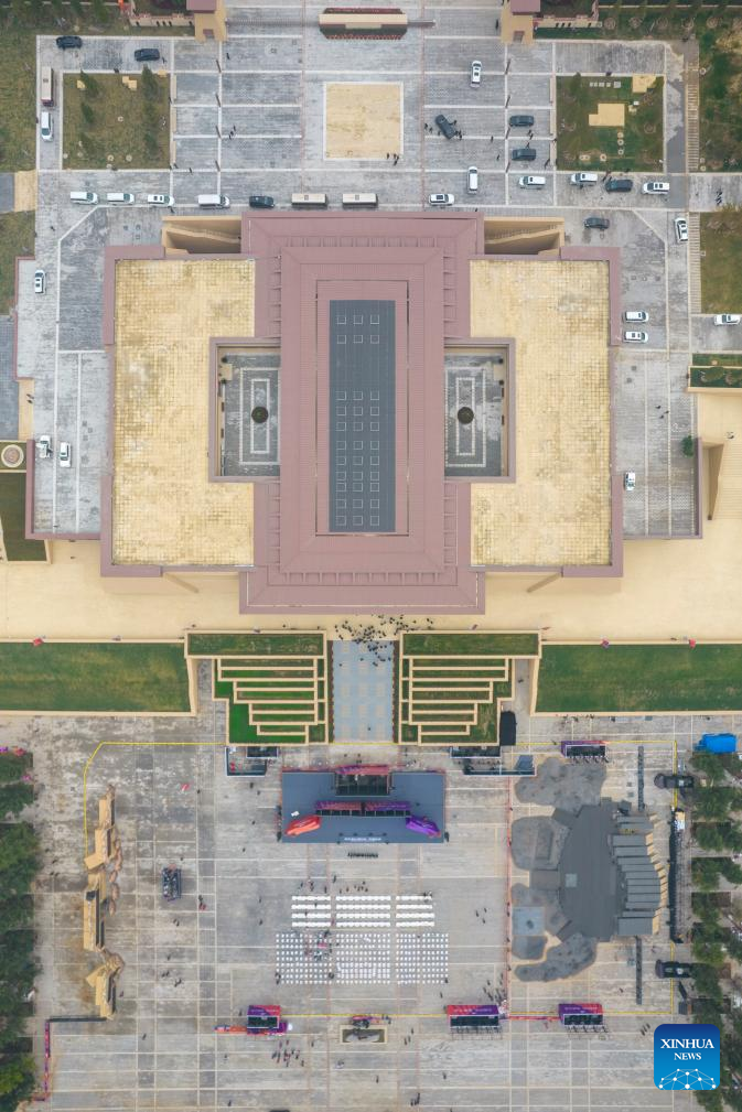 An aerial drone photo shows the Taosi Site Museum in Xiangfen County, north China's Shanxi Province, Nov. 12, 2024. (Xinhua/Yang Chenguang)