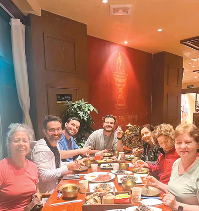 Tourists from Brazil pose for a photo at a restaurant in Jiuzhaigou, a famous scenic spot in southwest China's Sichuan Province. (Photo courtesy of China Chengdu Greatway Tour Co., Ltd.)