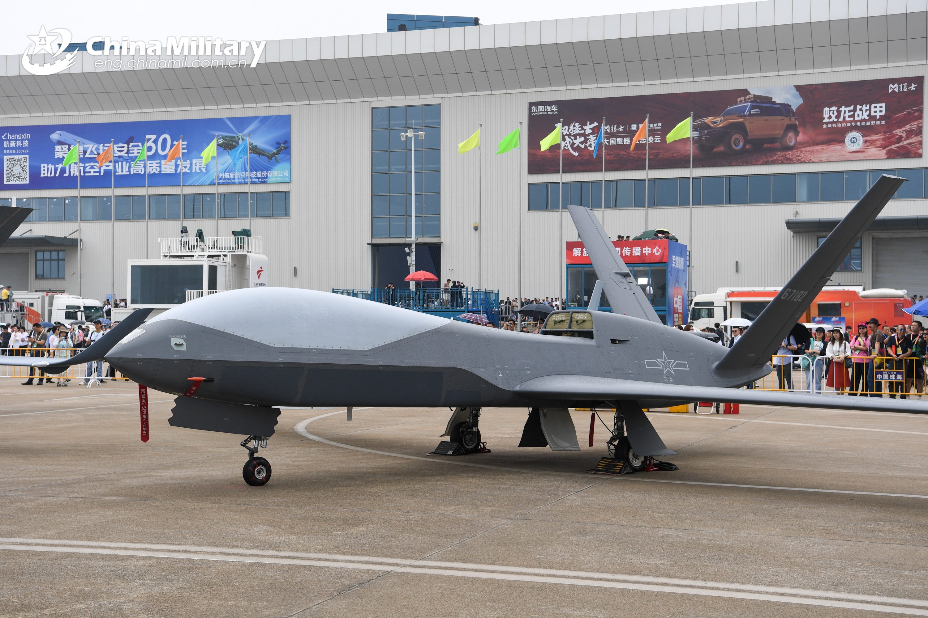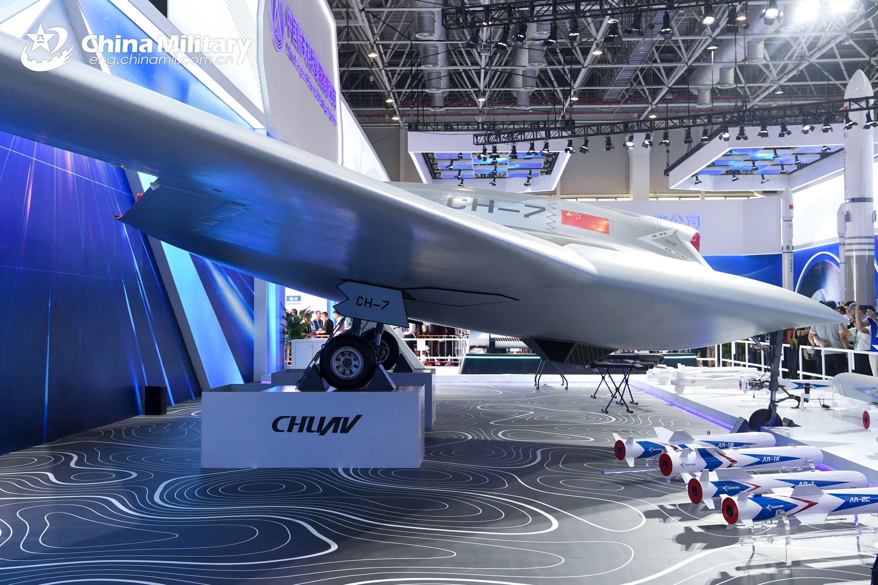 A CH-7 unmanned aerial vehicle (UAV) is on static display during the airshow in Zhuhai, south China's Guangdong Province, on November 13, 2024. The 15th China International Aviation and Aerospace Exhibition, also known as Airshow China 2024, kicked off in Zhuhai on Tuesday. (eng.chinamil.com.cn/Photo by Liang Xu)