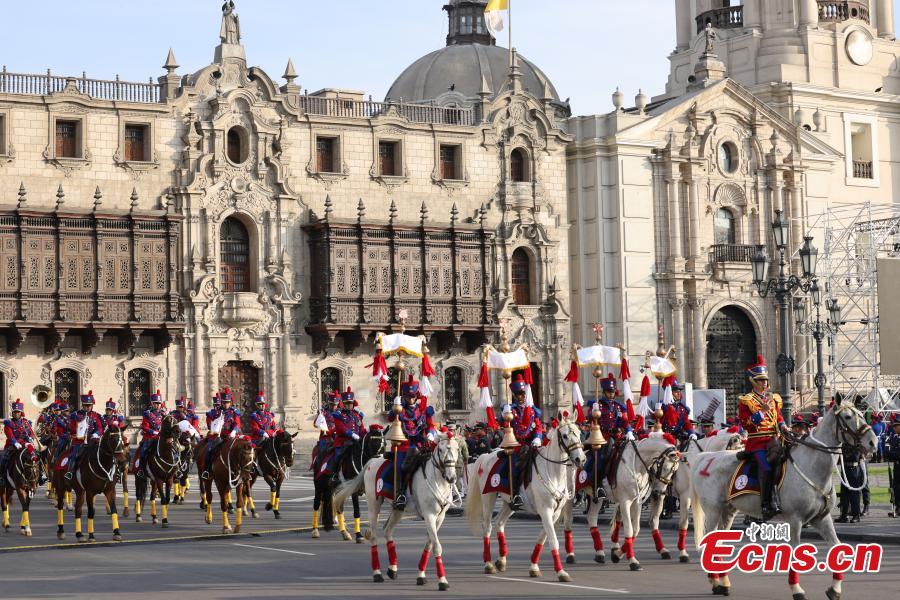 Chinese President Xi Jinping attends a grand welcome ceremony hosted by Peruvian President Dina Boluarte in Lima, Peru, Nov. 14, 2024. (Photo: China News Service/Sheng Jiapeng)